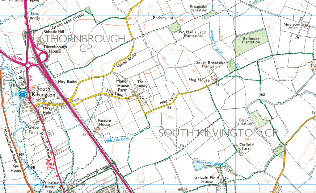 Below: An Ordnance Survey map showing roughly the same area, but also revealing how close the development will be to South Kilvington and north-east Thirsk (Stoneybrough Lane).